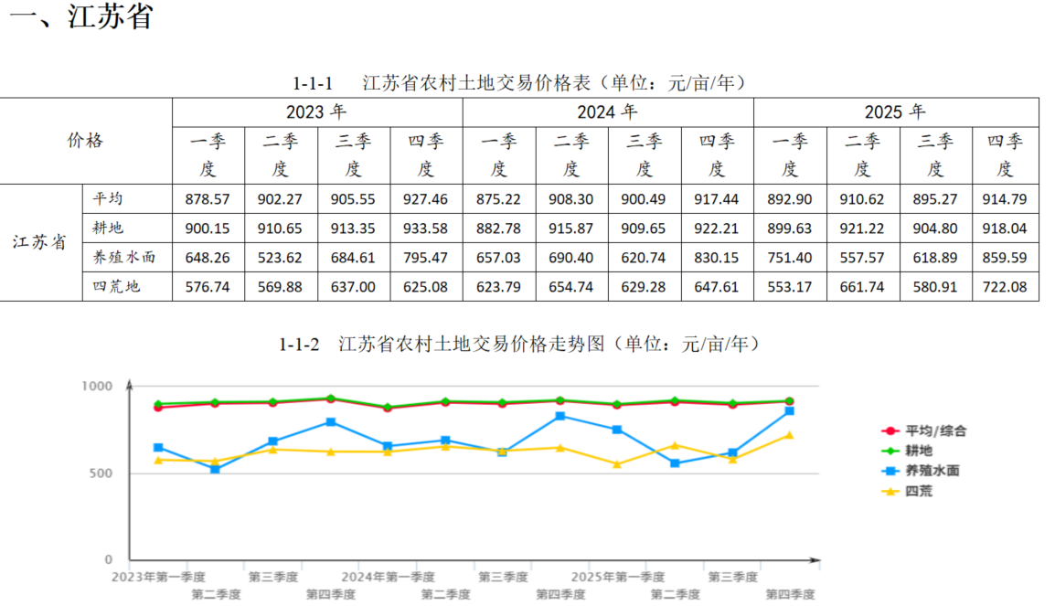 下载地址:2025年四季度江苏省农村土地经营权流转交易价格指数